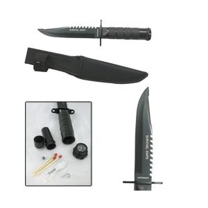 This knife was designed with survival in mind! The 8" Tactical Survival Knife. Handle opens to reveal compass and container of survival gear (fishing hook and cord, needles and matches). light-weight weight tiny size makes it straightforward to hold.